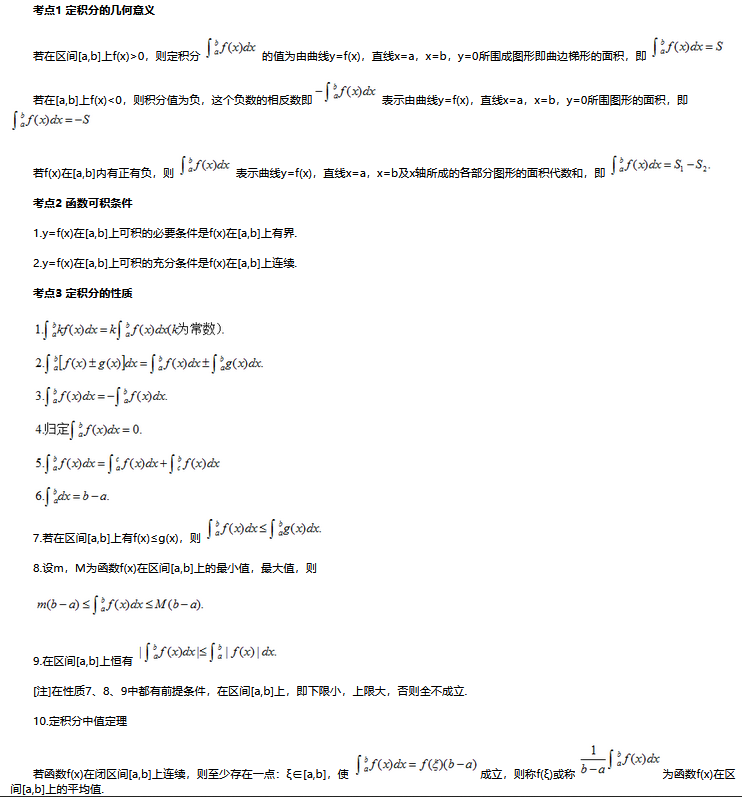 2022年陕西成人高考专升本《高数一》考点笔记(5)2022年陕西成人高考专升本《高数一》考点笔记(5)函数可积条件、定积分性质和几何意义...