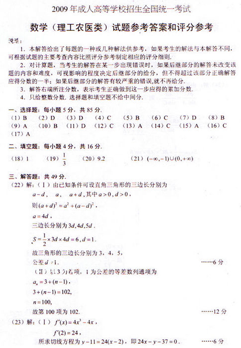 本文标签:陕西成人高考理数2009年成考高起点数学(理)真题及参考答案