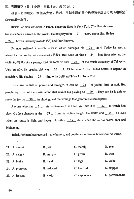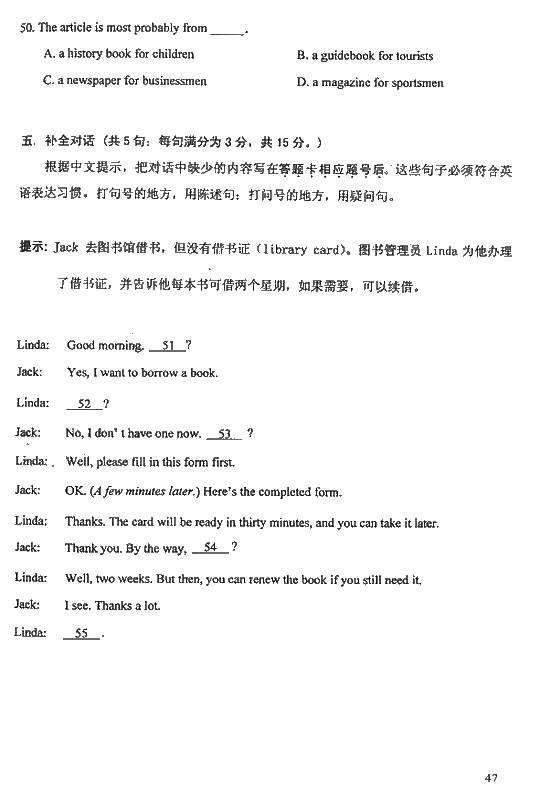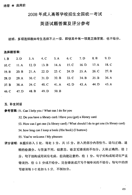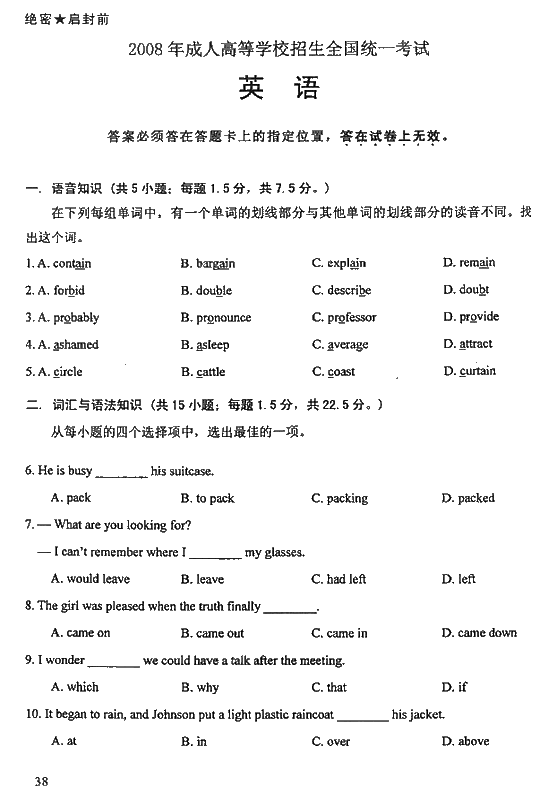 本文标签:陕西成人高考英语2008年成人高考考试真命题及答案(高起专)英语