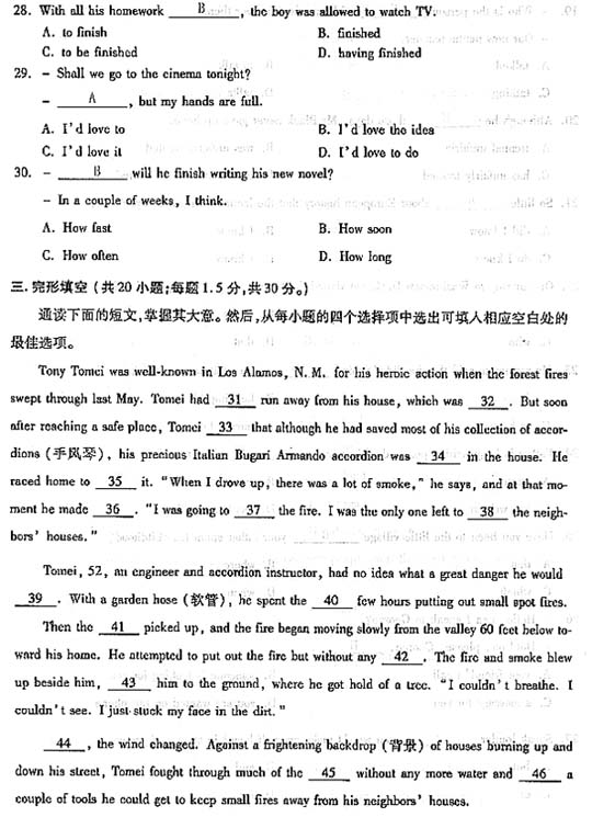 本文标签:陕西成人高考英语2004年全国成人高考招生统一试卷及答案—英语